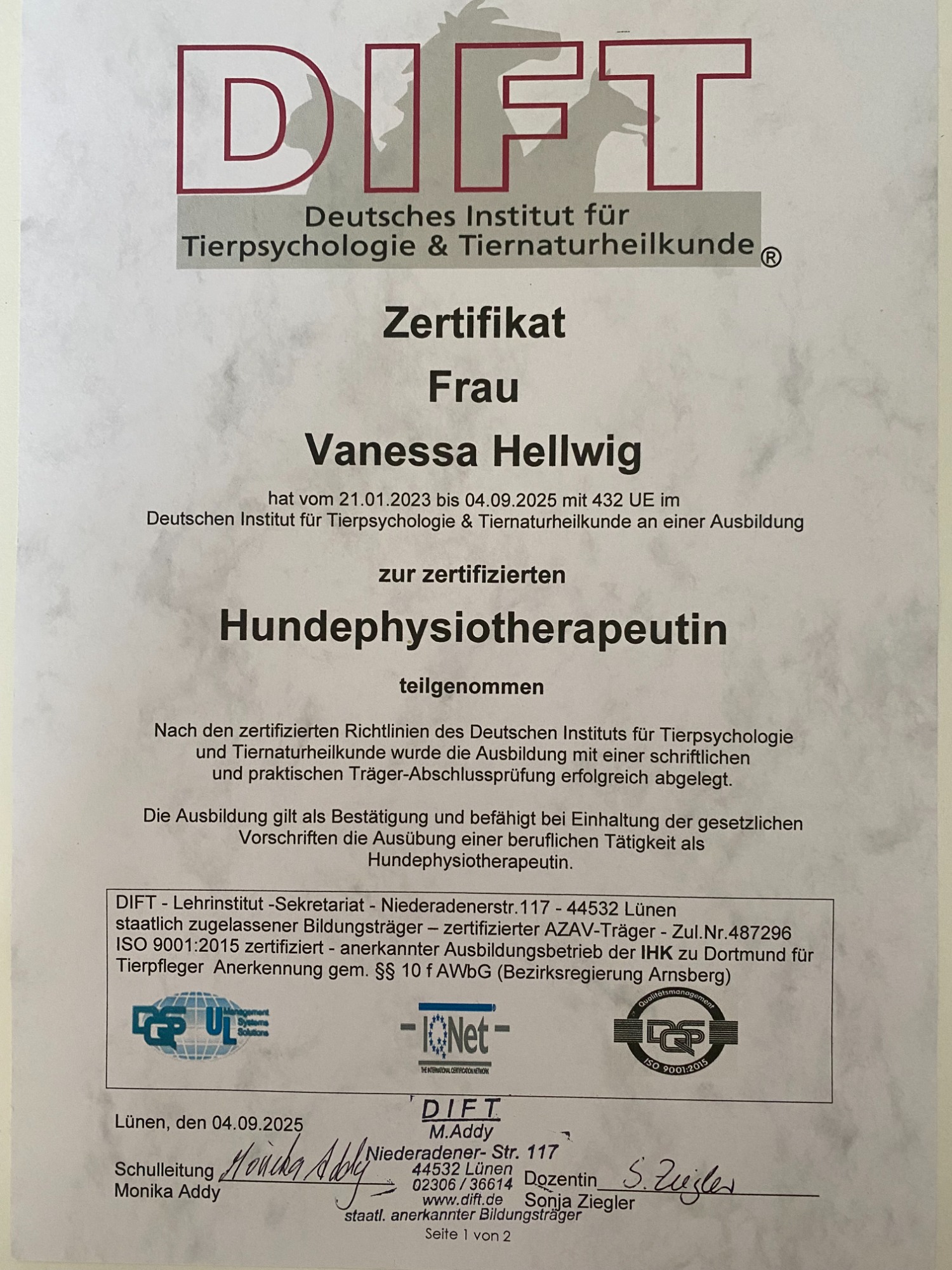 Hundephysiotherapeutin (DIFT – Deutsches Institut für Tierpsychologie und Tiernaturheilkunde)