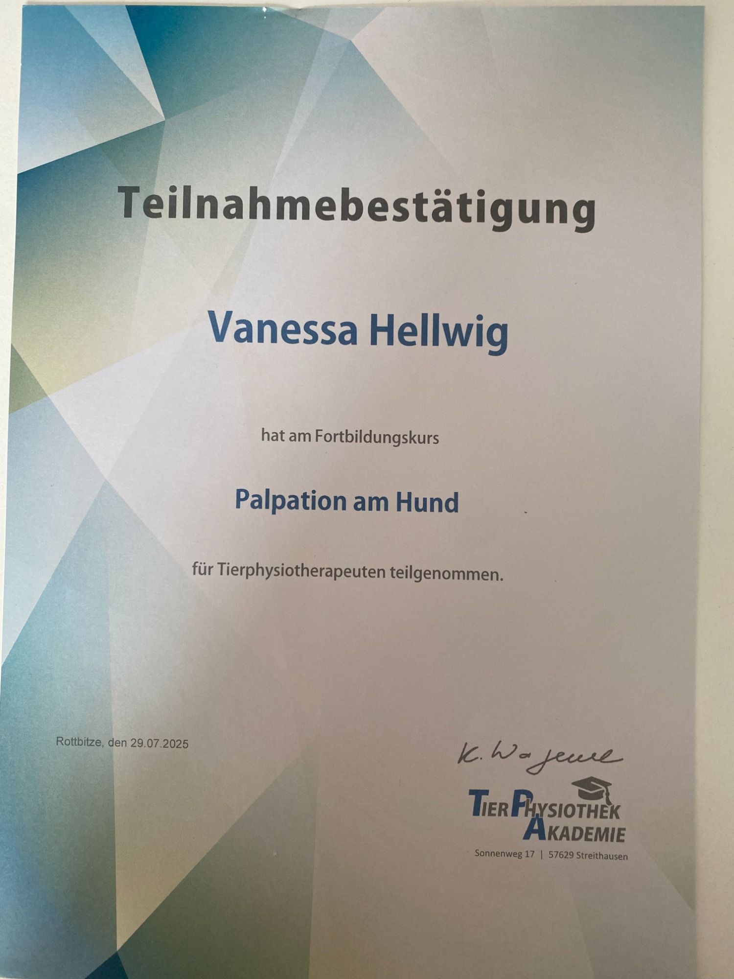 2025 Weiterbildung bei Impulse e.V. als Tierphysiotherapeutin